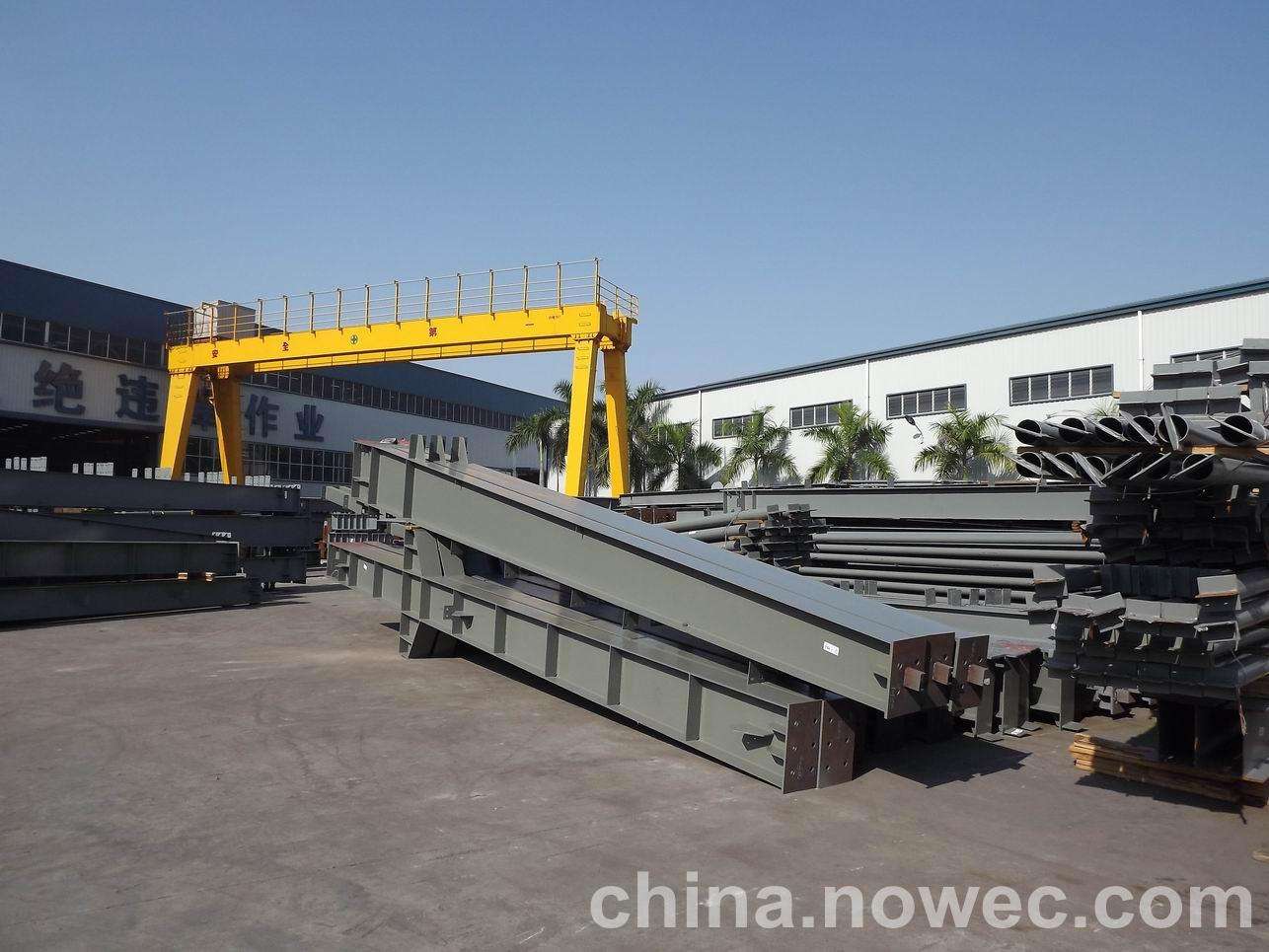 条状单元一般沿长跨方向分割,其宽度约为1~3个网格,其长度为l2或l2/2(l2为短跨跨距)。块状单元一般沿即墨网架平面纵横向分割成矩形或正方形单元。每个单元的重量以现有起重机能胜任为准。条(块)与条(块)之间可以直接拼装,也可空一网格在高空拼装。由于条(块)状单元是在地面拼装,因而高空作业量较高空散装法大为减少,拼装支架也减少很多,又能充分利用现有起重设备,故较经济。这种安装方法适用于分割后网架的钢度和受力状况改变较小的各类中小型网架,如两向正交正放四角锥、正放抽空四角锥等网架。